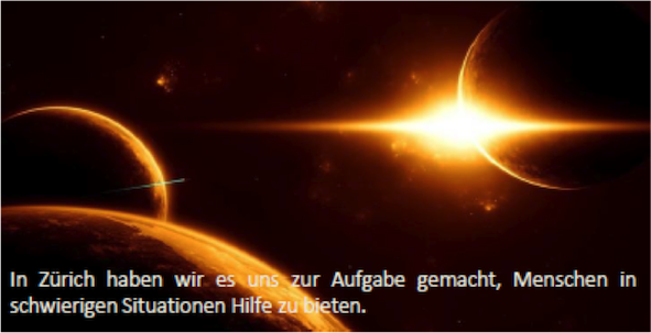 Wir lassen niemanden im Regen stehen. Erkennen und verstehen ist Basis für exakte Antworten. Die Energie der Sonne kommt zum Menschen: neue Wege werden sichtbar, eine positive Zukunft greifbar. Tiefgreifende Veränderungen werden oftmals als Wunder gesehen. Freude und Lebens-kraft kehren zurück. Hilfe, Krisen bewältigen, das Leben neu positiv erfahren, Ist-Zustand akzeptieren, die Zukunft gestalten und Leben.